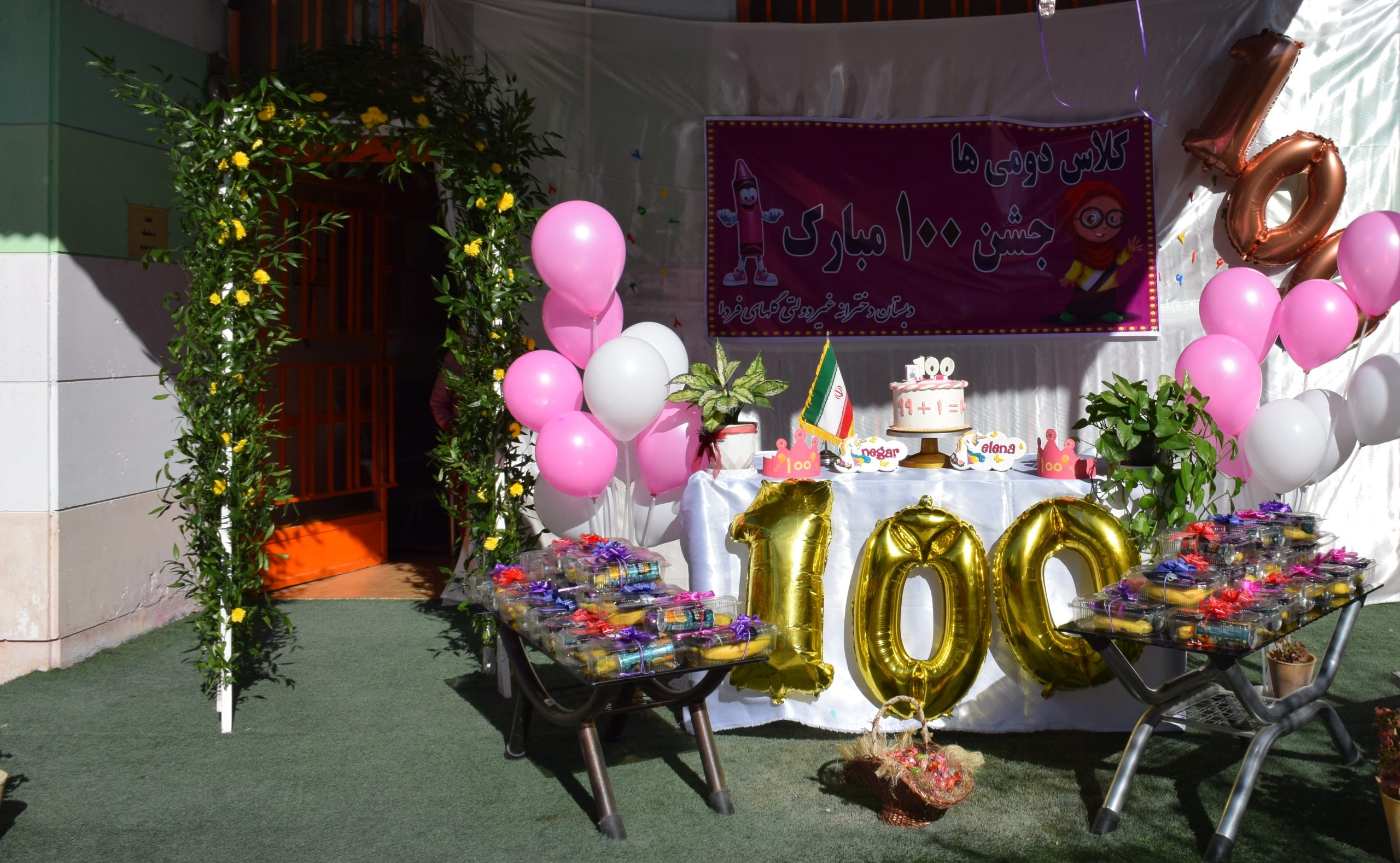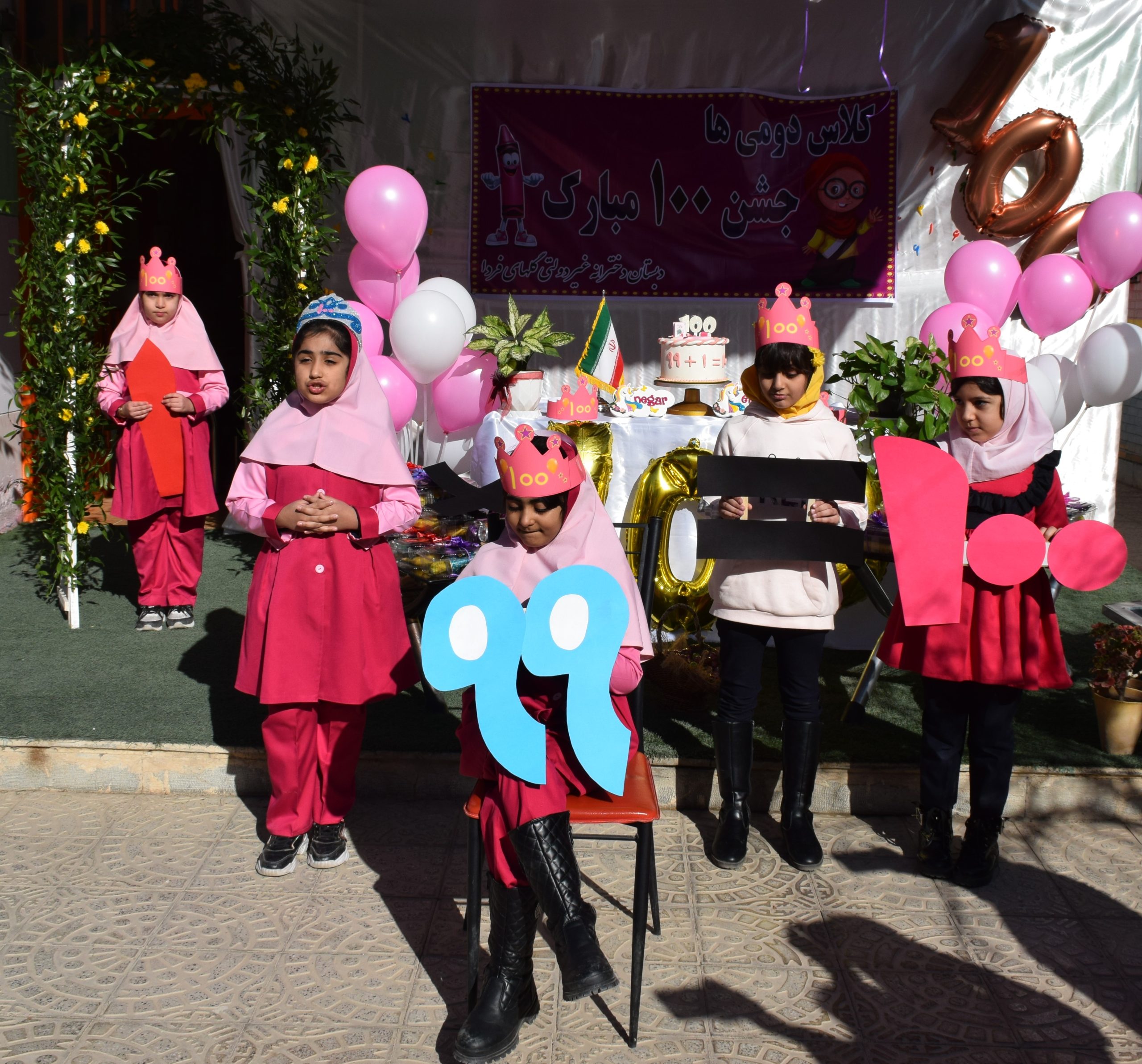 جشن صد شروع آموزش عدد سه رقمی به دانش آموزان است که این جشن امروز در مدرسه گلهای فردا با همکاری معلمان کلاس دوم برگزار شد. تعدادی از دانش آموزان پایه دوم با اجرای نمایش و سرود ساعات خوشی را برای دوستان خود رقم زدند . از دانش آموزان با پک های تغذیه پذیرایی و در اخر هدیه نفیسی به آنها داده شد.