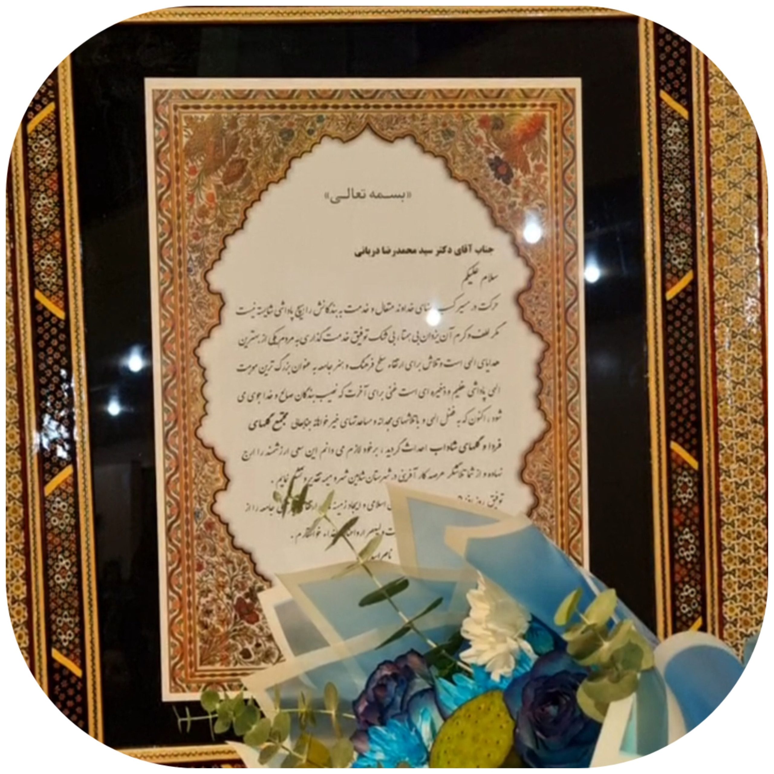 تجلیل از مدیریت مجتمع بزرگ آموزشی گلهای شاداب و گلهای فردا جناب آقای دکتر سید محمدرضا دربانی بعنوان کارآفرین برتر شهرستان شاهین شهر باحضور فرماندار شهرستان جناب آقای اسدی و هییت محترم همراه و برگزاری جشن آغازین کودکستان های دوره اول و دوره دوم گلهای فردا در تاریخ سوم مهرماه ۱۴۰۴ در تالار شیخ بهایی